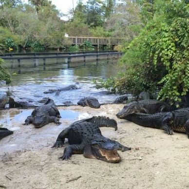 Located south of Orlando in Orange County, Gatorland is a 110 acre theme park and wildlife preserve features thousands of alligators and crocodiles, even a zip line and was used in the filming of Indiana Jones and The Temple of Doom.